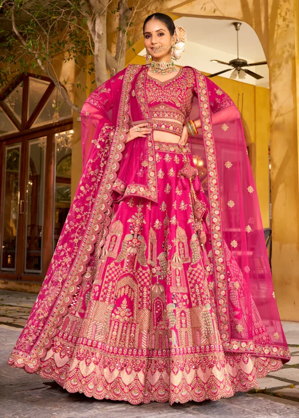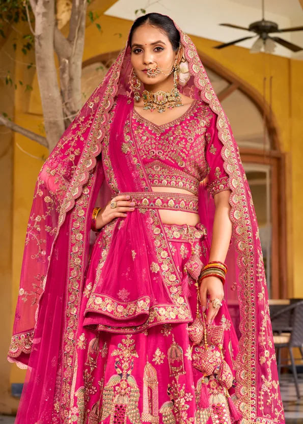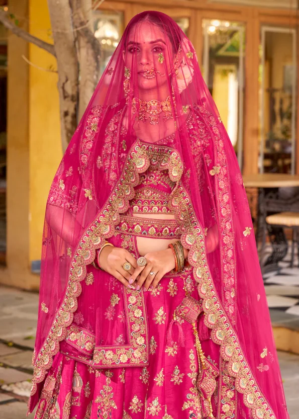 Elegant Traditional Pink Bridal Lehenga Choli with Intricate Embroidery.