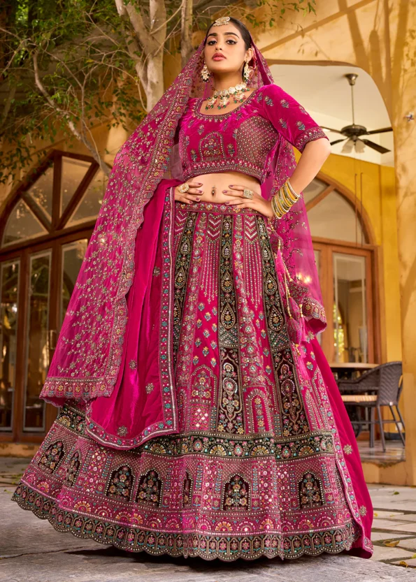 Fabric: High-quality Premium Velvet fabric gives the lehenga a soft, smooth finish while enhancing the overall design.