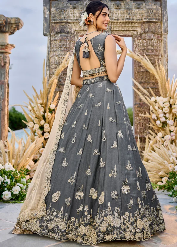Grey Tissue Fabric Beads & Threads Embroidered Ready to Wear Lehenga Choli With Dupatta – INK6193GR