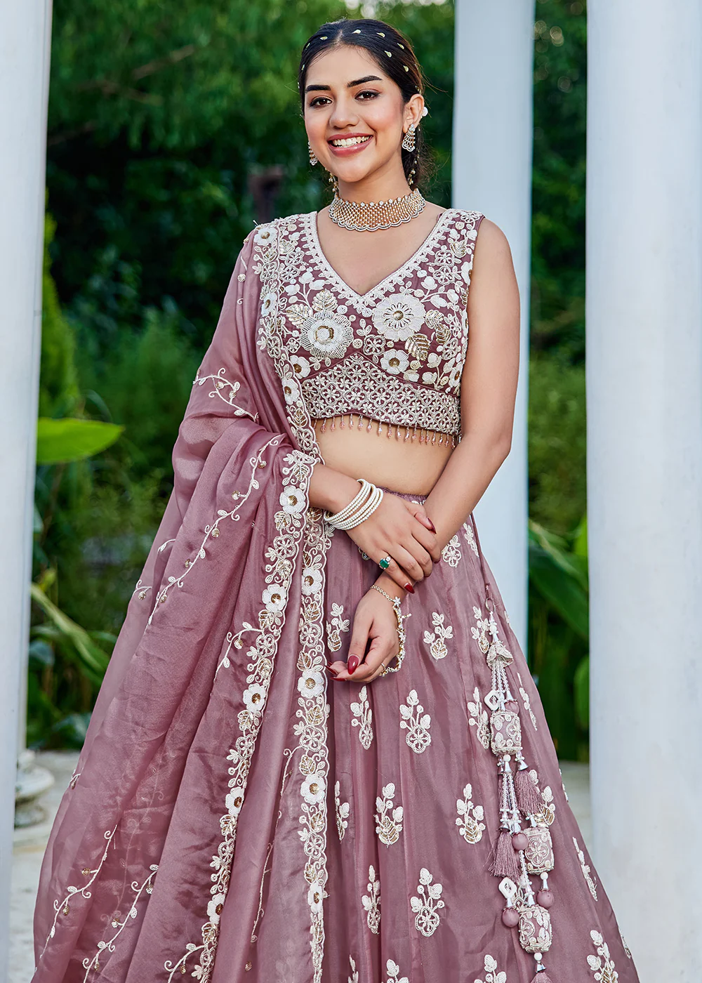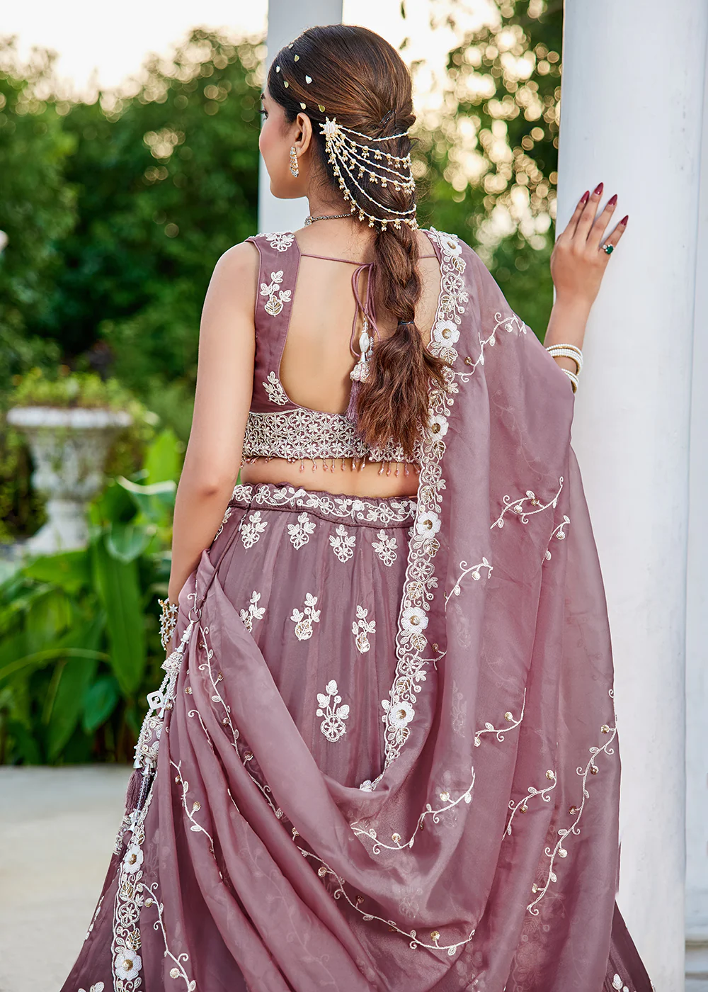 Lavender Organza Fabric Beads and Sequin Embroidered Ready to Wear Lehenga Choli With Dupatta