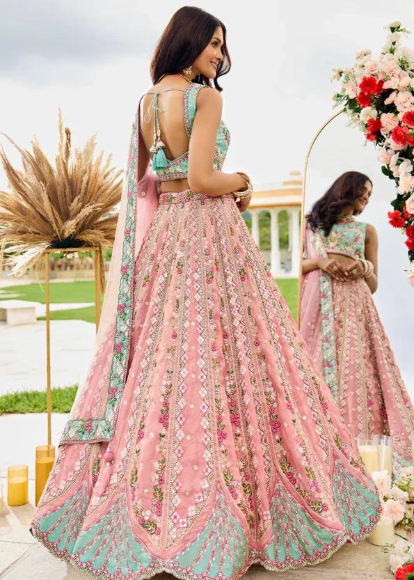 Pink Tissue Fabric Premium Wedding Semi-stitched Lehenga Choli with Dupatta – INK6113PK