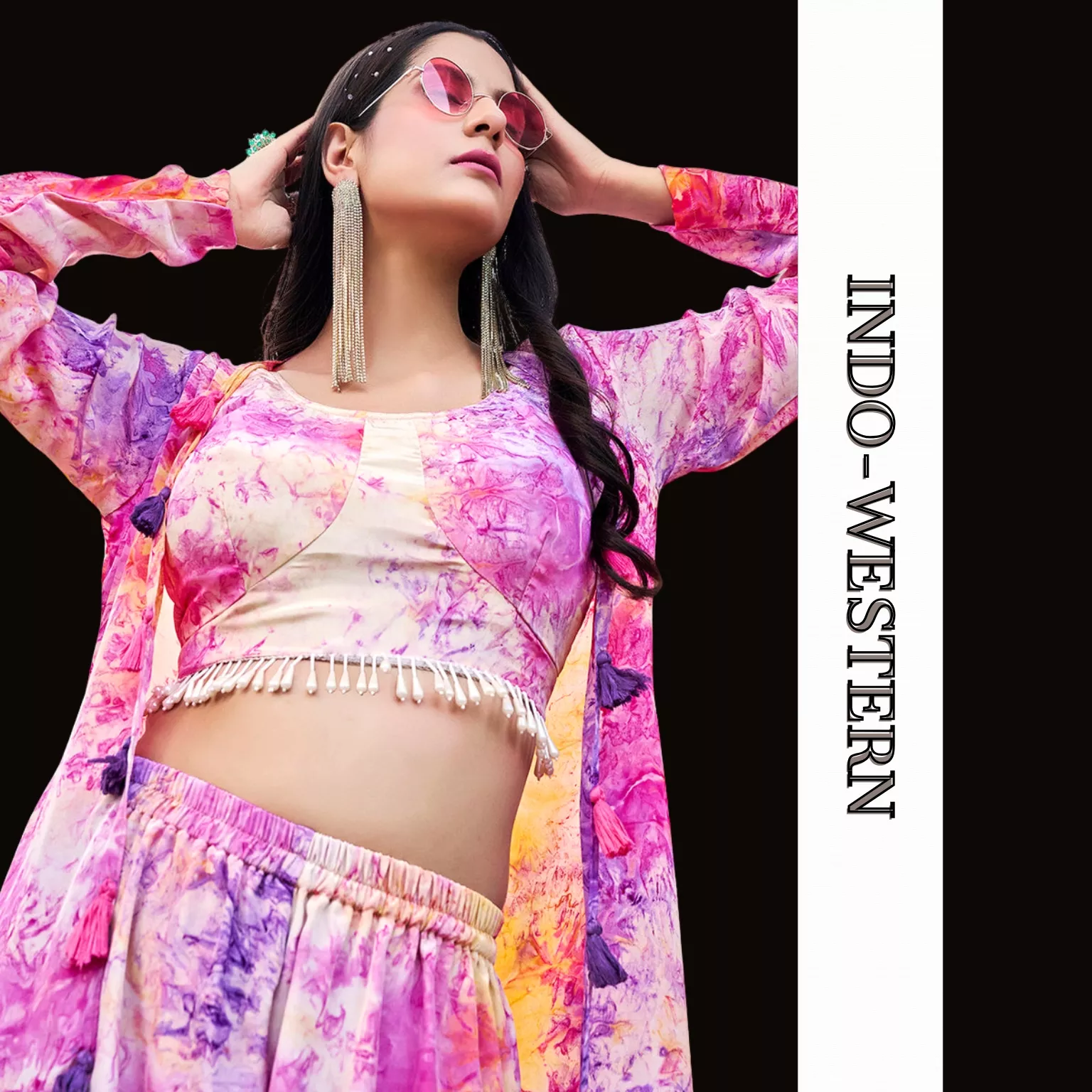 Pink Chinon Embroidered Sharara Set with Floral Sequins Work.