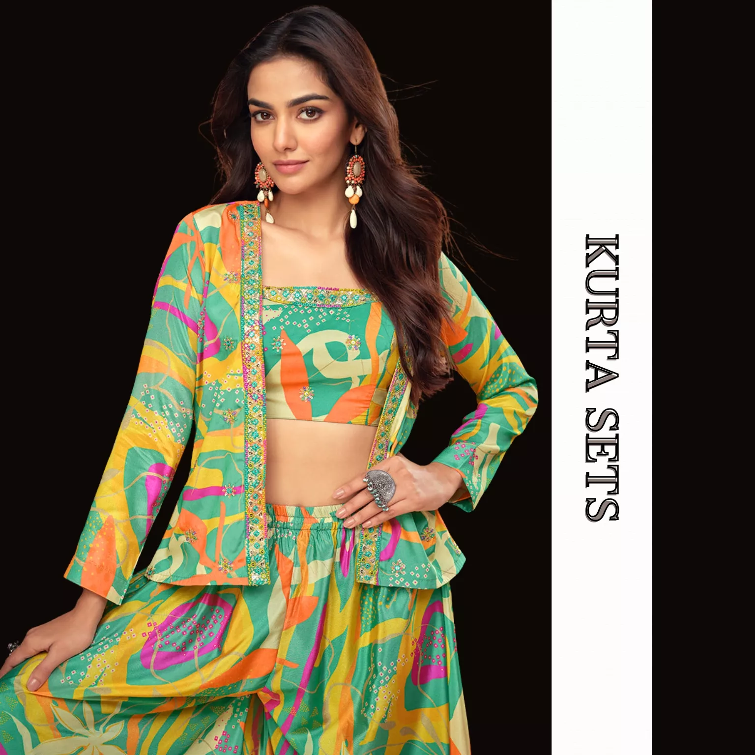 Yellow Chinon Embroidered Sharara Set with Floral Sequins Work.
